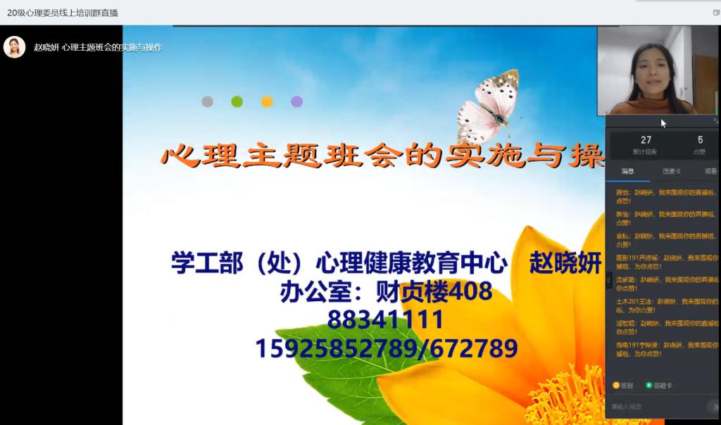 为了培训班级心理委员的工作技能,普及基本心理知识,提升心理委员的工作能力,我校组织了2020级新生班级心理委员和2018级2019级新任班级心理委员培训,本次系列培训共四场,在钉钉平台举行,历时一个月,共有140位心理委员参与此培训。