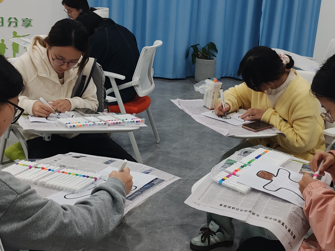 正视情绪始于让无形心绪落地。活动以姜饼人绘画为热身,助力同学们触碰真实自我。到场者均分四桌围坐,每桌配有姜饼人轮廓图与画笔。大家将姜饼人视作情绪载体,随心用色彩、线条勾勒专属模样,尽情表达当下心境。绘画结束后,各小组内部交流创作思路,随后推选代表分享感受与联想。在笔尖挥洒中,我们学着直面情绪;在倾听分享时,收获情感共鸣,为后续正视与表达情绪筑牢基础。