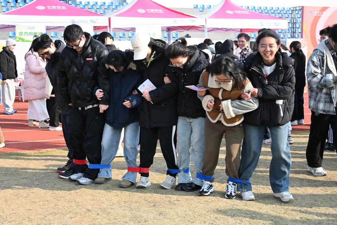 赛场旁呐喊阵阵,同学们组队并肩,绑绳的双腿同步发力。这不仅是一场体力的协作,更是团队默契的练兵场。在口号与步伐的共振中,同学们学会了在磨合中找节奏,于协作中懂担当,不抛弃不放弃。每一次全员冲过终点的瞬间,都是对“同心同力”的最佳诠释。