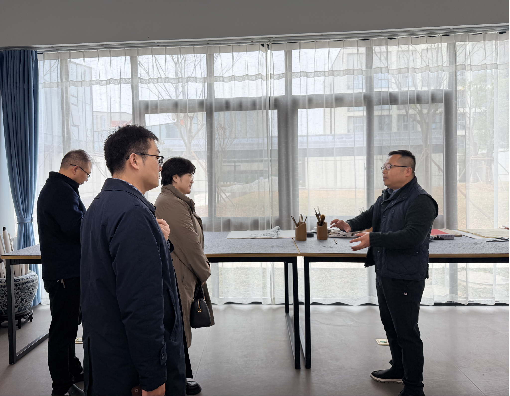 交流环节结束后,来访同仁实地走访了我校秀松书院与青藤书院,就“一站式”学生社区创新育人模式、心理健康教育工作体系等内容进行了现场调研与深入交流。