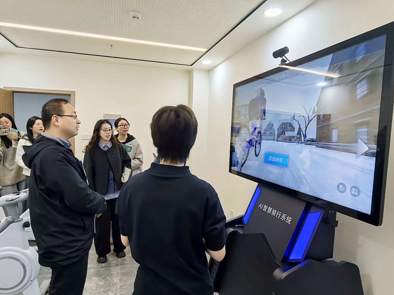 来访一行首先实地参观了我校大学生积极心理体验中心,详细了解中心的功能布局、环境建设、软硬件设备配置与日常运营管理情况,沉浸式体验了各功能室的服务场景,对我校以党建为引领、以学生为中心的心理健康教育阵地标准化、特色化建设给予了高度评价。