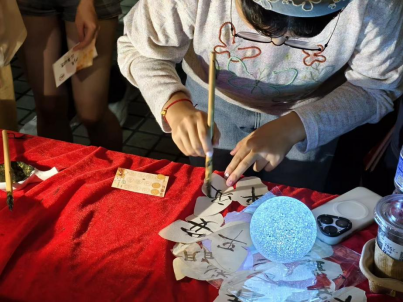 9月27日晚,文澜广场人流如织、灯火璀璨。明月高悬夜色中,清辉洒遍每一角落。本次游园会设置了四个特色小游戏,将日常娱乐与传统文化结合,唤醒文澜学子的节日记忆。在笔墨挥洒间,同学们在卡纸上写下祝愿,共祈生活美好;在风清月朗时,同学们在灯笼下思考谜题,感受文化魅力;在箭矢翻飞中,同学们在竹筒前瞄准目标,品味雅士风趣;在卡片翻阅处,我们回望红色历史,激发爱国热情。“月向人圆,月和人醉,月是承平旧。年年赏月,愿人如月长久。夜幕渐深,学生会成员精心制作的书法灯挂满枝头,影影绰绰,承载着对大家美好的祝愿,给这个夜晚增添了一份温馨与浪漫。