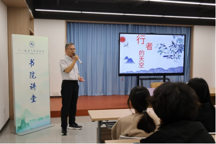 讲座以“行者的天空”为主题,汪柏江先生以“我的故事”为主线,生动讲述了其跨越多个领域的丰富人生经历。从浙江师范大学求学时独爱《楚辞》的“求索”岁月,到浦阳江畔执教的“涉世”之初;从绍兴十八年仕途中的“磨炼”与文化觉醒,到毅然下海、效法商圣的“进击”之路;从踏遍全球的“遨游”壮举,到收购古籍、兴建藏书楼的“归来”初心,他以“步履不停”诠释了行者精神。在结语中,汪柏江先生提炼出“人生即选择”的深刻体悟,强调“选择即无悔,做到极致”的信念,其“行者无疆、行者不惧”的人生态度深深感染了在场师生,引发了广泛共鸣。